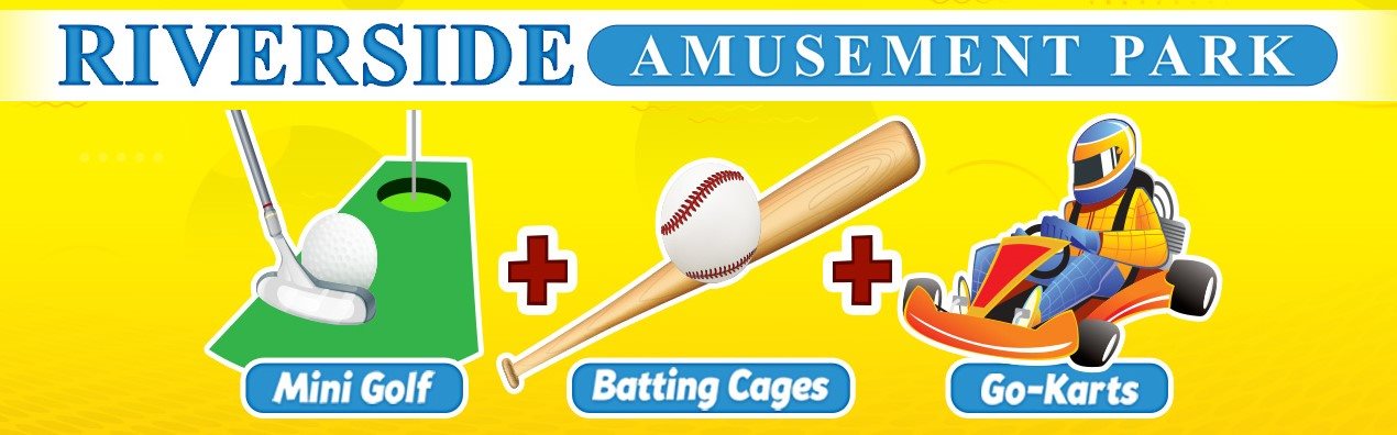 Riverside Amusement Park features Go-Karts, 18 holes of adventure golf, and slow and fast pitch baseball and softball. Refreshments and snacks are also available.